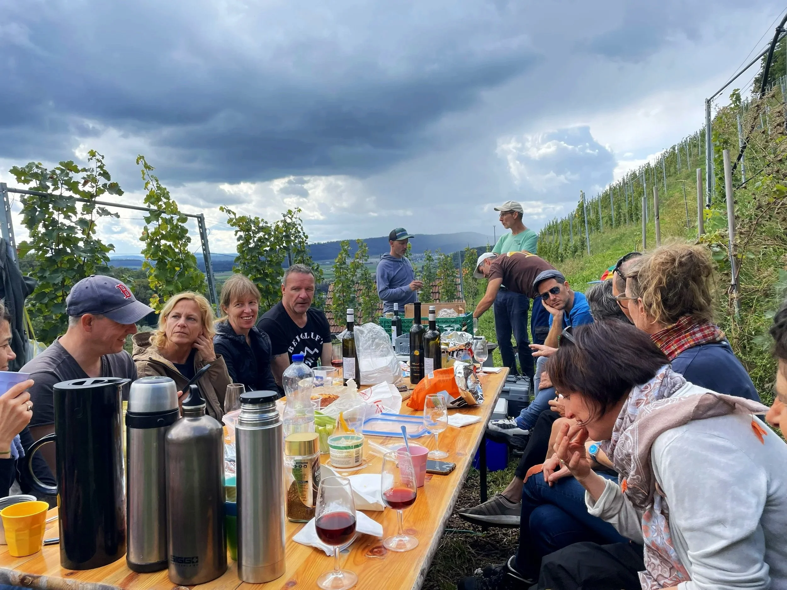Die Geselligkeit während und nach der Arbeit ist dabei eine der treibenden Kräfte, auf dass im Herbst die Trauben gesund und reif geerntet werden können.